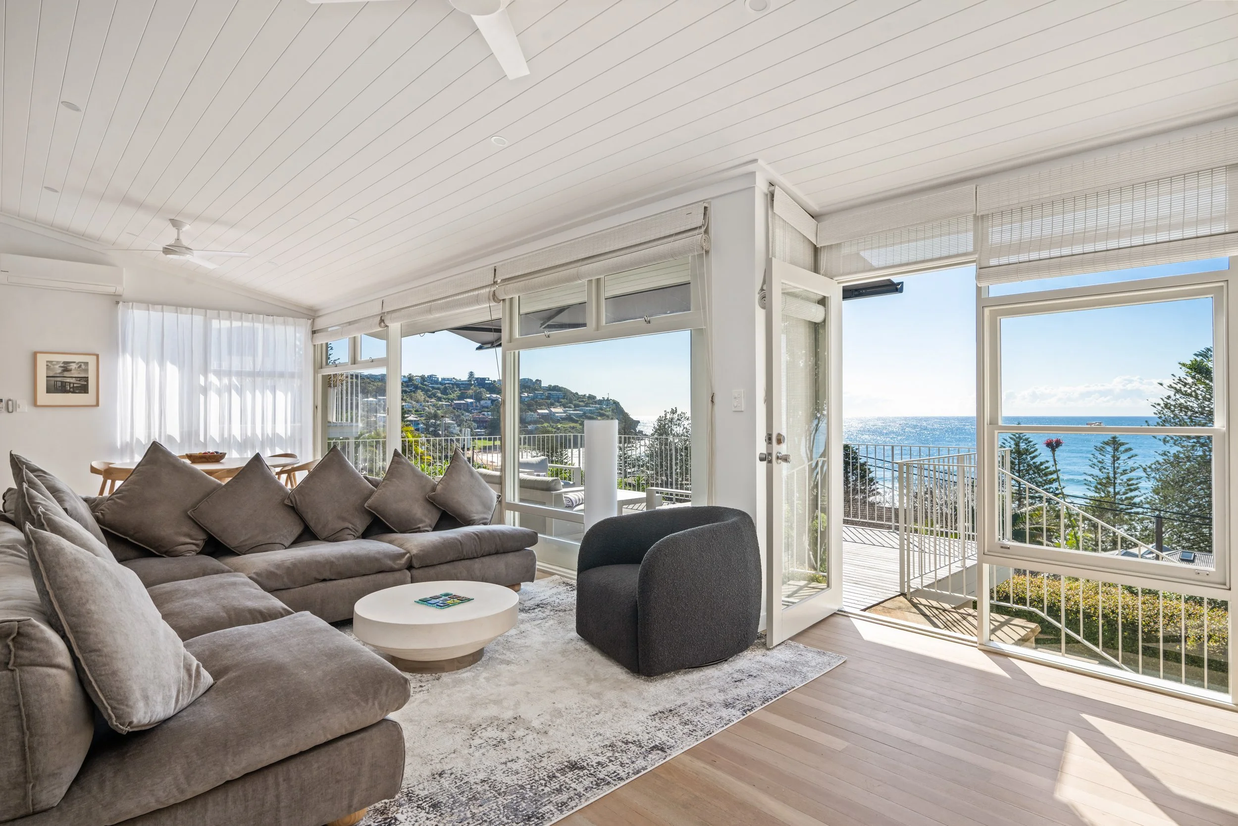 Crisp white interiors form a luminous backdrop to warm timber joinery and natural stone accents, creating a clean yet inviting palette that feels both timeless and refined. Quality materials elevate the simplicity of the original structure — wide timber floors, beautifully detailed cabinetry, and stone surfaces that add texture and permanence — while open-plan living spaces flow effortlessly to the outdoors, capturing ocean breezes and uninterrupted views. Designed to provide an easy, elegant beach home that honours its heritage while delivering comfort, warmth and understated luxury.
